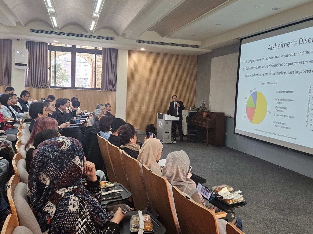 台湾中央研究院(アカデミアシニカ)で開催された会議で、発表を行いました(発表タイトル:Development and clinical evaluation of imaging biomarkersof reactive astrocytes in patients with Alzheimer’s disease)。また同内容の講演を台北医学大学において行いました(下の写真)。