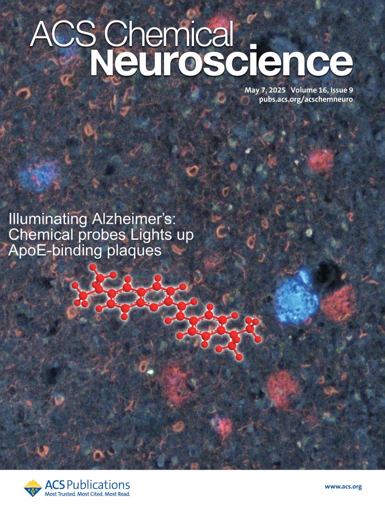 原田先生が筆頭著者として執筆した論文がACS Chem Neurosci 誌に掲載され、雑誌の「Supplementary Cover Art」に採用されました。ApoEが結合したアミロイド斑を識別可能な蛍光プローブに関する研究です。